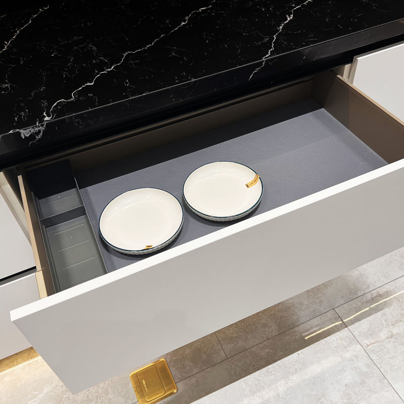 মডার্ন হোয়াইট কিচেন ক্যাবিনেটের এই সিরিজে পরিবেশ-বান্ধব ত্বক-অনুভূত পৃষ্ঠের চিকিত্সা ব্যবহার করা হয়। প্যানেলের মৌলিক উপাদান জার্মানি আমদানি করা শীর্ষ শ্রেণীর বুদ্ধিমান স্বয়ংক্রিয়ভাবে উত্পাদন লাইনের সাথে কাঁচামাল হিসাবে পাইন কাঠের উচ্চ মানের তৈরি। আমরা শুধুমাত্র MDI (4-diphenylmethane diisocyanate) আঠা ব্যবহার করি; উচ্চ-তাপমাত্রা উৎপাদন প্রক্রিয়ার সময় ফিনাইল উদ্বায়ী ছিল।
