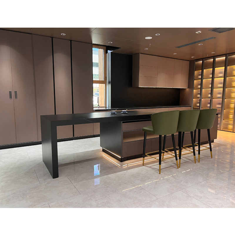 এই স্মার্ট কিচেন ক্যাবিনেটের এল-আকৃতির লাক্সারি কিচেন ক্যাবিনেটের সাথে গ্লাস কিচেন ক্যাবিনেট, ব্রাউন কিচেন ক্যাবিনেট এবং কাঁচের কিচেন ক্যাবিনেটের সঙ্গী চমৎকার ডিজাইনে আপনার রান্না করার সময় হালকা বিলাসবহুল অভিজ্ঞতা আনতে পারে। প্যান্ট্রি ক্যাবিনেট আপনার রান্নাঘরের সব স্যুট ধারণ করার জন্য অপ্টিমাইজ করা হয়েছে। .