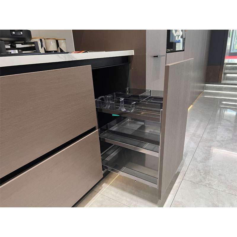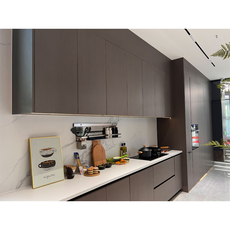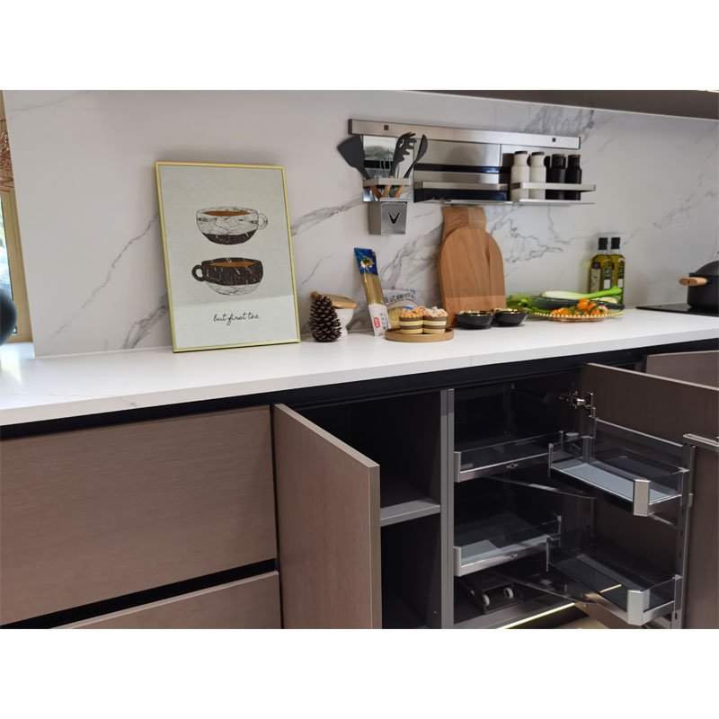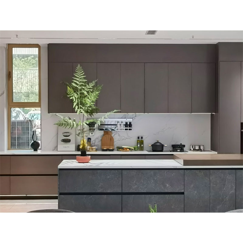 স্মার্ট কিচেন হাই-এন্ড ল্যামিনেট কিচেন ক্যাবিনেটে বাদামী রঙকে প্রধান রঙ হিসেবে ব্যবহার করা হয় এবং ম্যাট টেক্সচারটি ভিজ্যুয়াল এবং হাতের অনুভূতিতে আরও উন্নত। নিয়মিত এবং অপ্রচলিত আকার উভয়ই উপলব্ধ, এবং l-, L- এবং U- আকৃতির ক্যাবিনেটগুলি কাস্টমাইজ করা যেতে পারে, ক্যাবিনেট এবং কাউন্টার টপ উপকরণ এবং রঙের বিনামূল্যে পছন্দের সাথে।