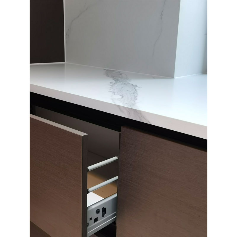 স্মার্ট কিচেন হাই-এন্ড ল্যামিনেট কিচেন ক্যাবিনেটের বেঞ্চ টপ কোয়ার্টজ পাথর দিয়ে তৈরি, যা স্পর্শে মসৃণ, দেখতে সুন্দর, পরিষ্কার করা সহজ, শক্তিশালী এবং টেকসই।