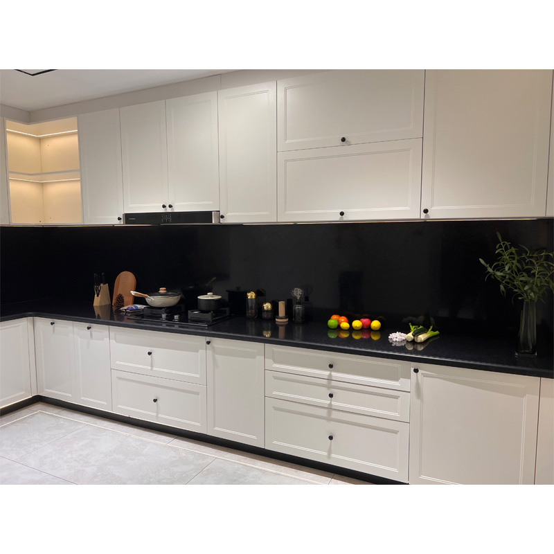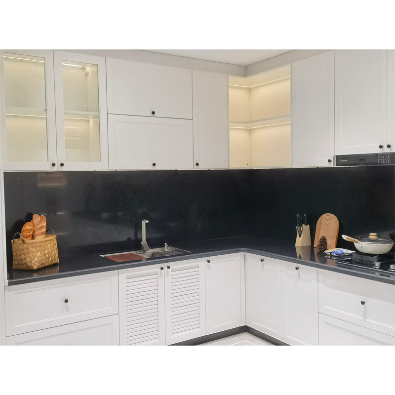 এল আকৃতির সাদা কাস্টম কিচেন ক্যাবিনেট |