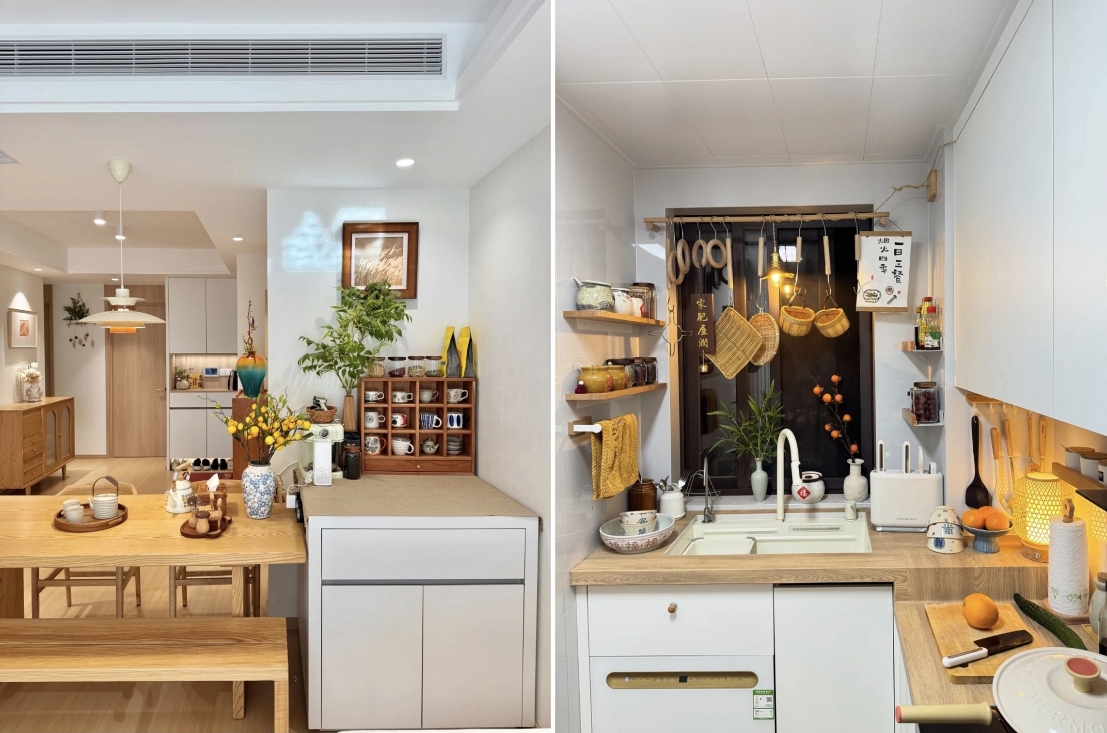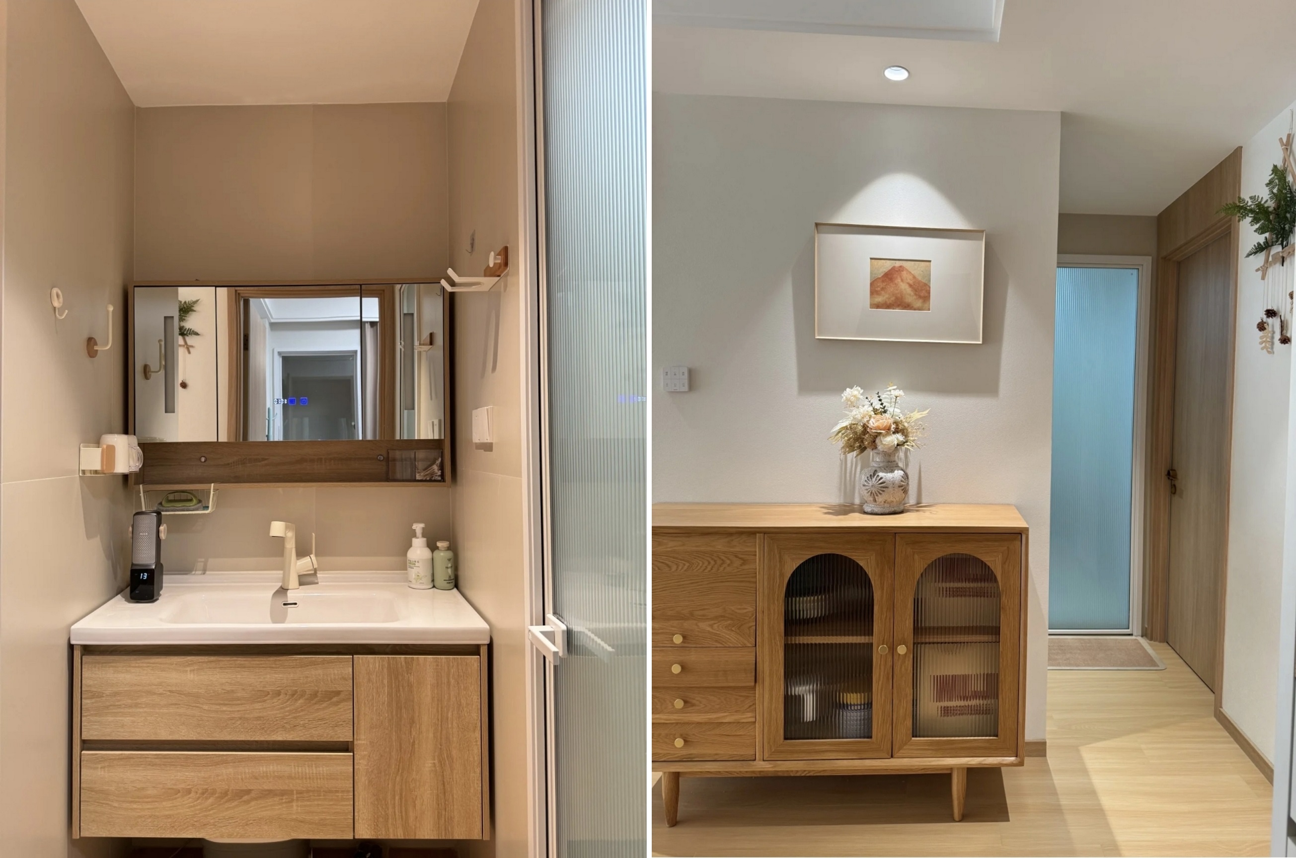 4 ... মন্ত্রিসভা দরজা প্রাচীরের রঙের কাছাকাছি, এবং মন্ত্রিসভা শরীর কাঠের শস্যের টাইলগুলির কাছাকাছি, ভিজ্যুয়াল এফেক্টটিকে খুব একীভূত করে তোলে।