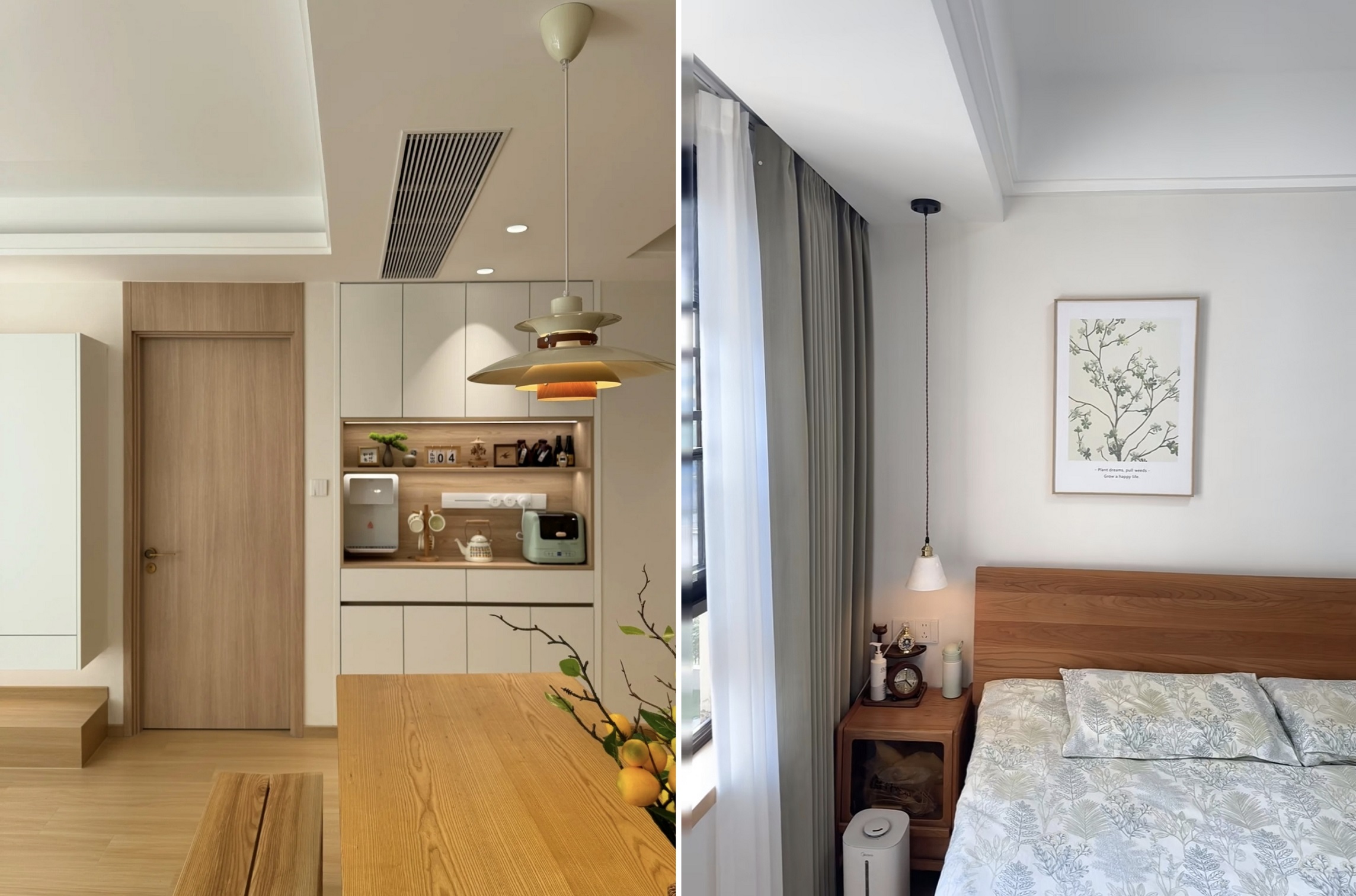 1। পুরো বাড়ির দেয়ালগুলি হাতির দাঁত সাদা স্ফটিক পাথর আর্ট পেইন্ট দিয়ে আঁকা এবং মেঝেগুলি প্রান্তিক পাথর ছাড়াই কাঠের শস্যের টাইলস দিয়ে আচ্ছাদিত।